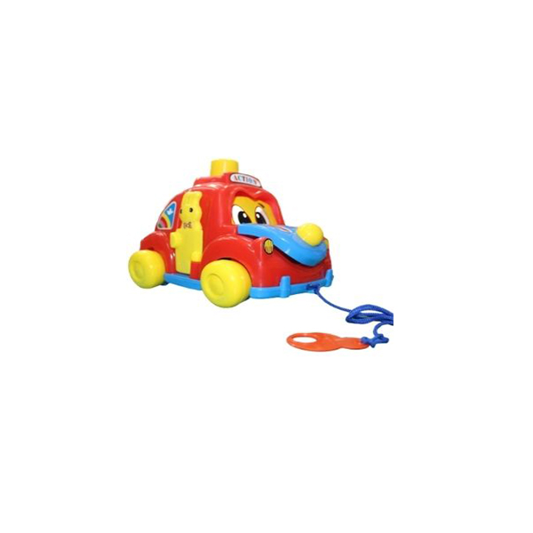 Action Car With Rope Made In India On pulling, the mouth moves up and down making a whistle sound and fun for childern to open and close the figured doors.