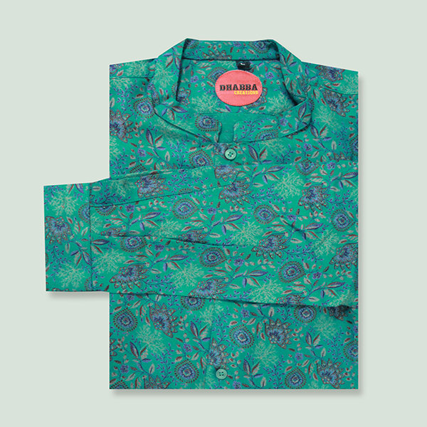 A sultry green colored background with complimenting colors of creamy floral patterns woven into intricacy creates a mirage of green blends on this beautiful south cotton fabric.